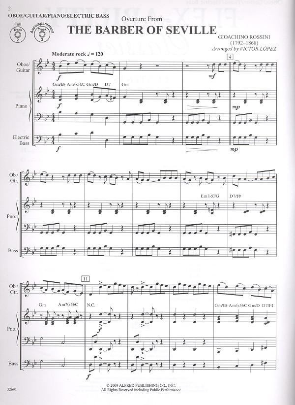 The Barber of Seville (Overture, Rossini) Bourrée from Lute Suite no.1 (Bach) Habanera from Carmen (Bizet) Hungarian Dance no.5 (Brahms) Minuet from Anna Magdalena Bach Notebook (Bach) New World Symphony (Dvorak) Pomp and Circumstance (Elgar) Prince of Denmark's March (Clarke) Toreador's Song from Carmen (Bizet) William Tell (Overture, Rossini)