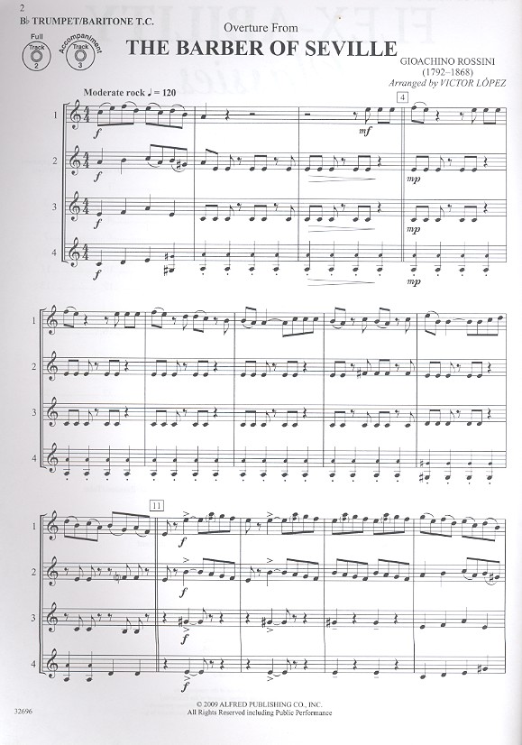 The Barber of Seville (Overture, Rossini) Bourrée from Lute Suite no.1 (Bach) Habanera from Carmen (Bizet) Hungarian Dance no.5 (Brahms) Minuet from Anna Magdalena Bach Notebook (Bach) New World Symphony (Dvorak) Pomp and Circumstance (Elgar) Prince of Denmark's March (Clarke) Toreador's Song from Carmen (Bizet) William Tell (Overture, Rossini)