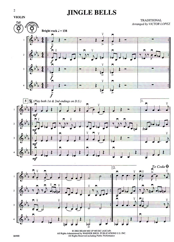Lopez, Victor, arr. Songs for Christmas, Chanukah and New Year's Eve Jingle Bells Santa Claus is coming to Town Have yourself a merry little Christmas I'M getting nuttin' fo Christmas Frosty the Snowman I'll be Home for Christmas Angels we have heard on high Joy to the World We wish you a merry Christmas Angels we have heard on high Joy to the World We wish you a merry Christmad Auld Lang Syne Chanukah Medley