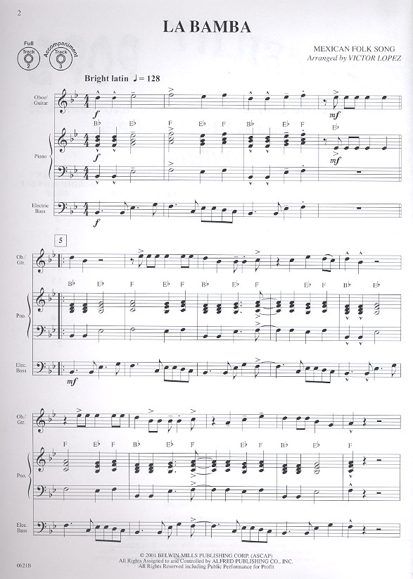 Lopez, V, arr. Flexability pops La bamba When the saints go marching in Eye of the tiger Peter Gunn In the midnight hour China grove Jeepers creepers Soul man Sweet georgia brown Frosty the snowman