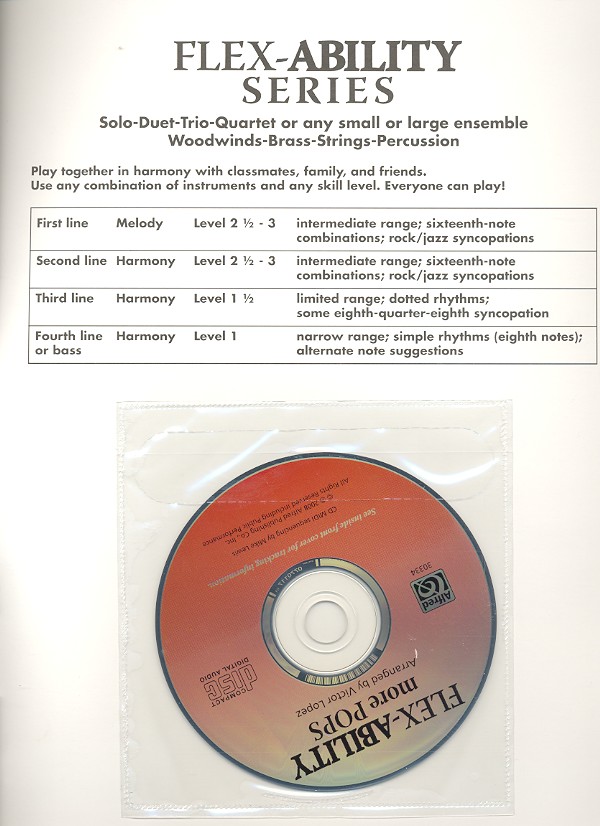 Lopez, Victor, arr. Alegria American Idiot Because of you Boulevard of broken Dreams Gonna fly now (Theme from Rocky) Hedwig's Theme (from Harry Potter and the Sorcerer's Stone) Hips don't lie Jumpin' Jack Flash The New Girl in Town (from Hairspray) We are Family Wonka's Welcome Song (from Charlie and the Chocolate Factory)
