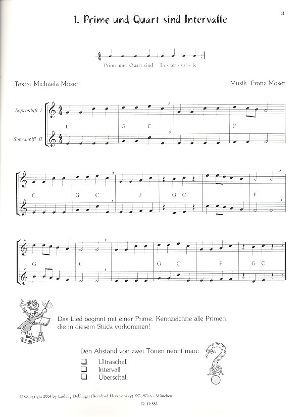 Franz, Michaela Prime und Quarte sind Intervalle Üben üben das macht Spaß! Kommt und tanzt mit wir drehen uns im Kreise! Was heißt Da capo al Fine? Atmenzeichen: Bitte hol hier Luft! The Clarinets the Clarinets Du das klingt ja wirklich toll - die Fanatsie in Moll! Schicke mir bitte eine SMS! Ich fliege mit die auf den Mond und zurück Der Luftballon der flog mir davon Du und ich - wir singen ein Duett! Diese Polka spielen wir zu zweit! Kommt und seht wie die Welt sich dreht! Fang mich dang mich ich lauf weg! Largo heißt: Spiel bitte breit! Didl didl didl didl dum schrumm schrumm! Achtelnoten Achtelnoten Achtelnoten spiel ich gern! Ich hatte heute einen wunderschönen Traum Komm mit mir tanz mit mir! Ich spiel Blues den ganzen Tag! Ich komm aus Amsterdam! Ungarn wir kommen und kaufen Paprika! Samba der kommt na klar aus Südamerika! Schubidubidu - it's Swingtime!