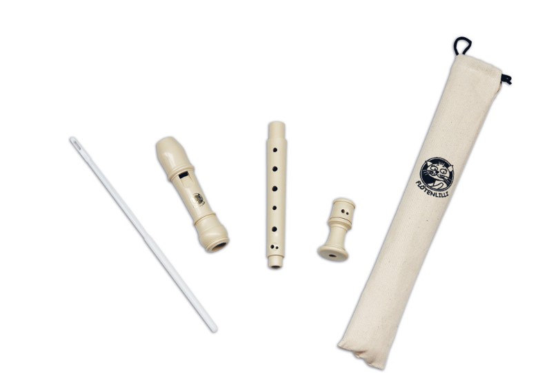 Farbe: elfenbein mit verschließbarer Stofftasche zum Schutz des Instruments mit praktischem Wischerstab zum Reinigen und Pflegen mit coolem Flötenlilli-Logo auf Blockflöte und Tasche