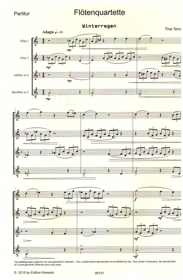| Untertitel: | für 2 Flöten, Altflöte in G und Bassflöte in C Partitur und Stimmen |