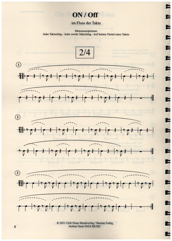 Improvisatorischer Umgang mit metrisch pulsierender Zeit In 6 Kapiteln bietet FLOW praktische Übungen fur das Studium metrischer Zeiteinteilung, die Entwicklung eines metrischen Flusses und seine vielfältigen Gestaltungsmöglichkeiten: PULS - TAKT - FORM - LEERE - SYMMETRIE VERBINDUNGEN Die Übungen behandeln sowohl das prinzipielle Verhältnis von Tönen zu einem zugrundeliegenden Metrum als auch die verschiedenen Gangarten innerhalb eines Metrums sowie die Möglichkeiten, den einzelnen Taktschlag kunstvoll zu unterteilen. Die Gruppierung eines Pulses fuhrt zum Entstehen unterschiedlicher Taktarten und in zahlreichen Übungen bietet FLOW neben dem grundlichen Erarbeiten eines sicheren Taktgefuhls das praktische Erforschen der Möglichkeiten einer polyrhythmischen Strukturierung des melodischen Flusses an. In unterschiedlichen Taktarten werden die Übungen in eine größere Form gebracht, die Aufmerksamkeit auf den formenden Zeitabstand zwischen den Teilen eines melodischen Bogens gelenkt und am Beispiel einer symmetrischen Weiterentwicklung eines rhythmischen Anfangsmotives wird die Möglichkeit einer in sich zusammenhängenden Formbildung erläutert. Wie Linien eines offenen improvisierten Flusses in logische Verbindung gebracht werden können zeigt FLOW im abschließenden Kapitel. Alle Übungen in FLOW sind rhythmisch notiert und bleiben daher als kreative Herausforderung fur alle Möglichkeiten einer melodischen Umsetzung offen, sei es durch Skalen, Pattern oder freitonal/atonal. Als Beispiel fur eine mögliche melodische Formgebung der rhythmischen Motive sind Bewegungsgestaltungen notiert, sie dienen der Anregung zur förderlichen Weiterentwicklung der eigenen Tonsprache und musikalischen Fähigkeiten.