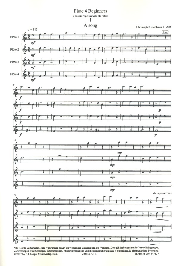 Flute for Beginners 9 Pop-Quartette A Song Market-Place Petite Valse Coming home My Melody Liv's Theme Sous le pont Rock Talk Ballade pour Jacqueline