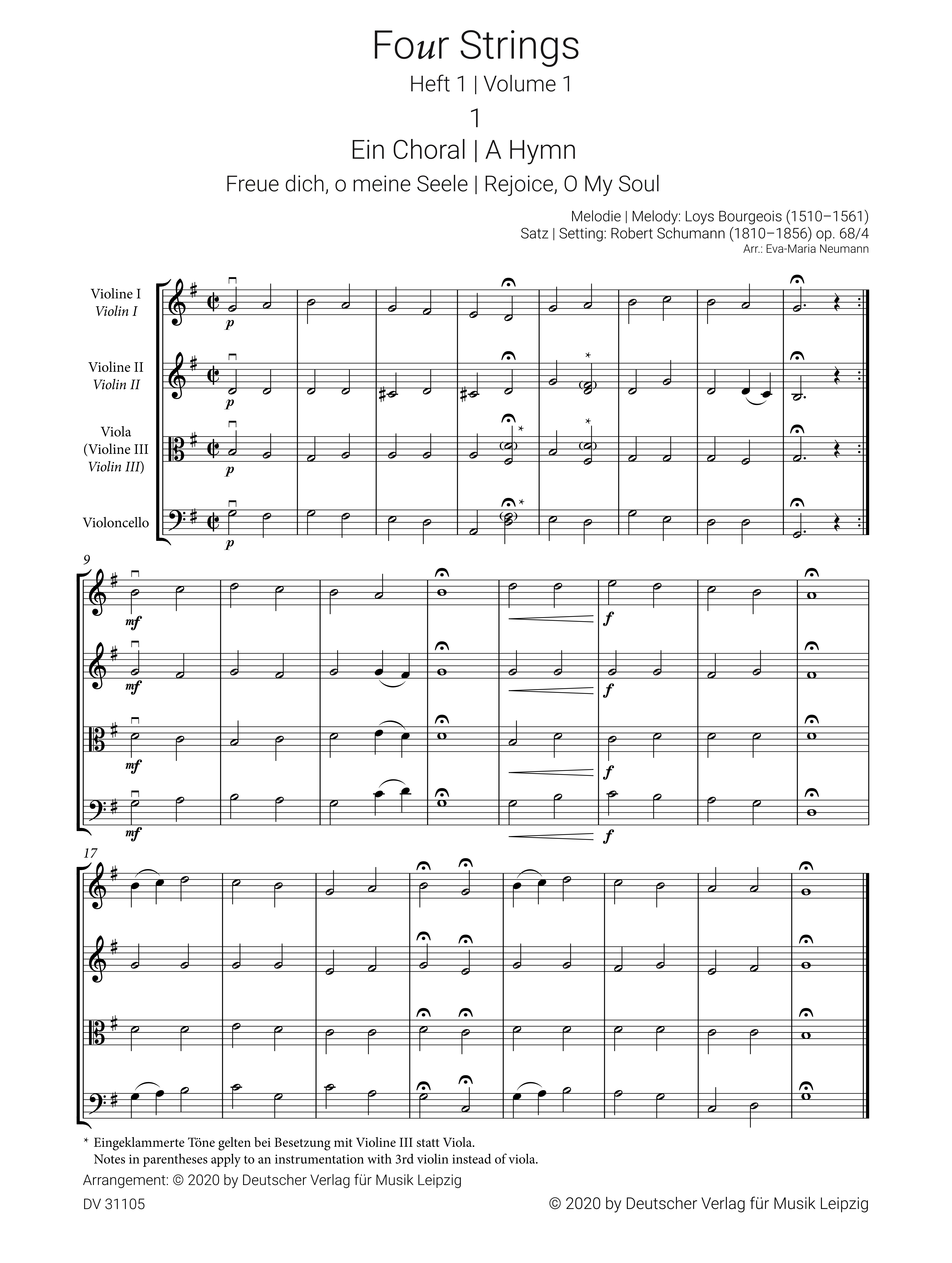 | Untertitel: | für 2 Violinen, Viola (Violine 3) und Violoncello Partitur und Stimmen |