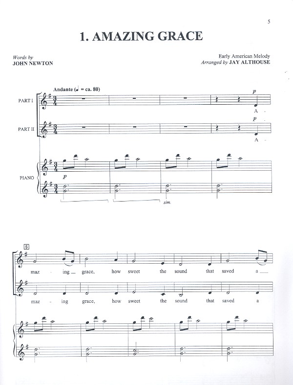 11 Folk Songs For Recitals, Concerts and Contests Amazing Grace Poor wayfaring Stranger Siyahamba Skye Boat Song Camptown Races All through the Night He's gone away Scarborough Fair Homeward Bound Cindy Shenandoah