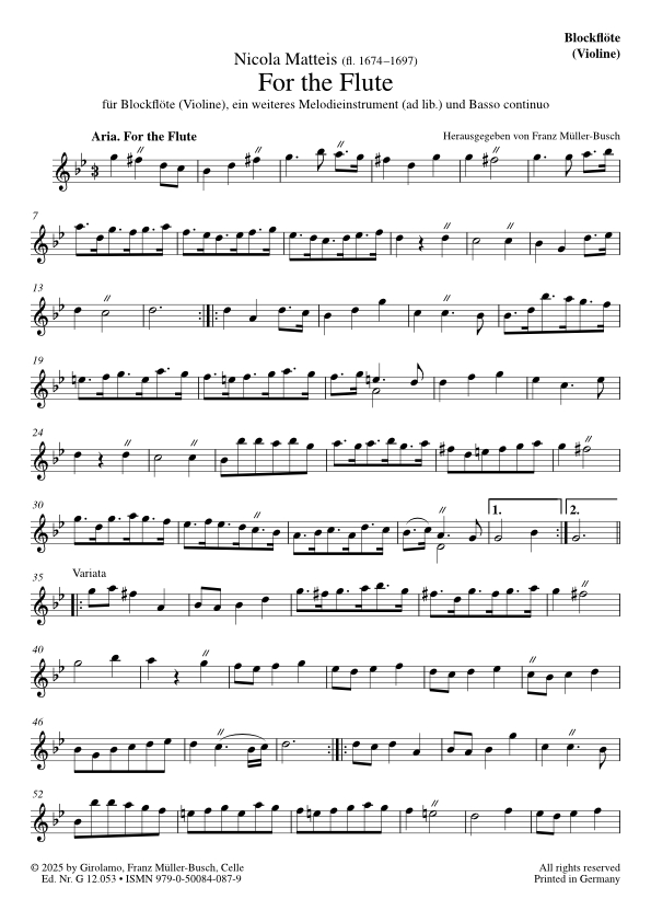 | Untertitel: | für Alt- oder Tenorblockflöte (Violine), Melodieinstrument ad lib. und Bc Partitur und Stimmen |