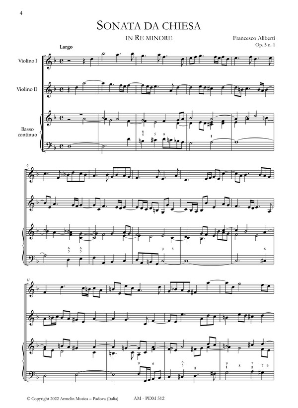 nello stile da chiesa per due violini e basso continuo, op. 5