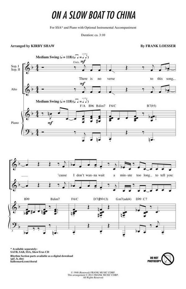 Frank Loesser, On a Slow Boat to China