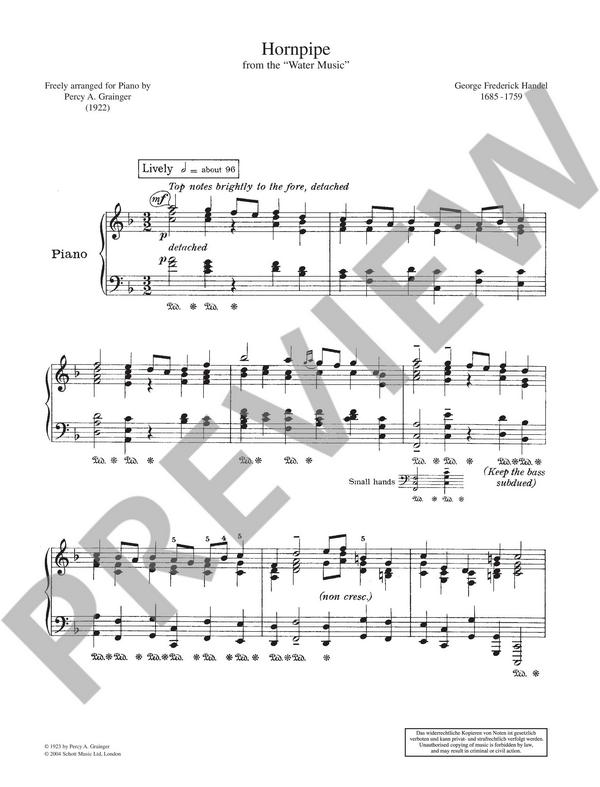 Grainger, Percy Aldridge, arr. Hornpipe from the Water Music (Händel) Now o now (Dowland) Wiegenlied (Brahms) Après un rêve (Fauré)