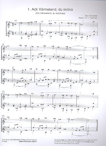 Ein Streifzug durch die nordischen Länder Schweden Ack Värmleland, du sköna (Oh Värmeland, du schönes) Till Österland vill jag fara (Nach Ostland will ich fahren) Så lunka vi så småningom (So trotten wir allmählich) Du gamla, du fria (Du alter, du freier) Liten Karin (Klein-Karin) Uti vår hage (Auf unserem Wiesengrund) Vårvindar friska (Der frische Frühlingswind) Norwegen A kjore vatn, a kjore ved (Hol das Wasser, hol das Holz) Per Spelmann (Hans Spielmann) Vem kan segla (Wer kann segeln) Ritsj ratsj fillibombombom Dänemark Til pinse, når skoven bli'r rigtig gr°n (Zu Pfingsten wenn der Wald grünt) Vort modersmål er dejligt (Wie süß ist unsere Muttersprache) Månen går så langsom og så l°j (Langsam zieht der Mond dahin) På s°en, når den skummer vred (Auf stürmischer See) Finnland En voi sua unhoittaa pois (Ich kann dich nicht vergessen) Tein minä pillin pajupuusta (Hab mir ein Weidenpfeiflein geschnitzt) Merimies rakastaa meren aaltoja (Ein Seeman liebt das wogende Meer) Minun kultani kaunis on (Ja, mein Schatz ist wunderschön) Emman valssi (Emmas Walzer)