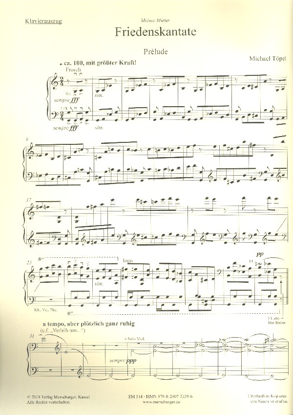 | Untertitel: | für Soli, gem Chor und Orchester Klavierauszug |