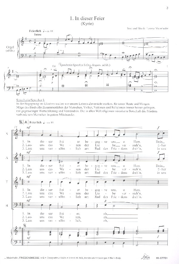 | Untertitel: | für gem Chor a cappella (Sprecher, Orgel, Streicher ad lib) Chorpartitur mit Orgel und Sprechtexten (Mindestabnahme 10 Stk) |