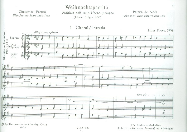 | Untertitel: | Weihnachtspartita für 3 Blockflöten (SAT), Spielpartitur |