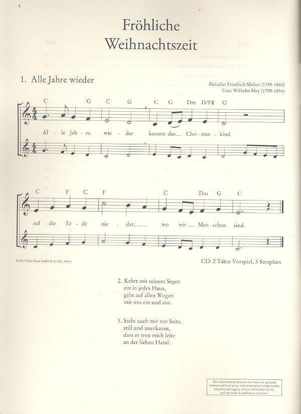 Magolt, Marianne, ed Beliebte Weihnachtslieder in leichten Sätzen Alle Jahre wieder Engel lassen laut erschallen Es ist ein Ros entsprungen Es ist für uns eine Zeit angekommen Fröhliche Weihnacht überall Ihr Kinderlein kommet Joseph lieber Joseph mein Jingle Bells Kling Glöckchen kling Kommet ihr Hirten Lasst uns froh und munter sein Leise rieselt der Schnee Morgen Kinder wird's was geben Morgen kommt der Weihnachtsmann O du fröhliche O Heiland reiß die Himmel auf O Tannenbaum Rudolph the red nosed Reindeer Stille Nacht heilige Nacht Vom Himmel hoch da komm ich her Winter Wonderland Wir sagen euch an