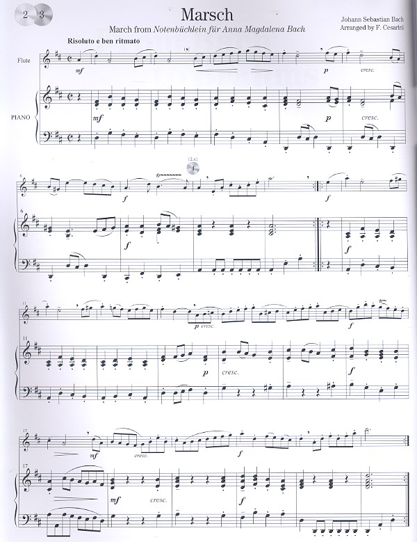 Cesarini, Franco, arr. Marsch (Bach) Musette (Bach) Air (Händel) Impertinence (Händel) Les fifres (Dandrieu) Tamourin (Rameau) Allegro (Bach) Ochsen-Menuett (Haydn) Serenade (Haydn) Menuett (Mozart) Bagatelle (Beethoven) Walzer (Weber) Ständchen (Schubert) Lied ohne Worte (Mendelssohn) Abendlied (Schumann) Walzer (Brahms)