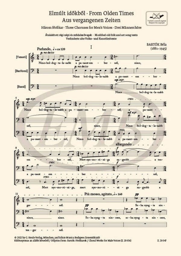 Elmúlt idökböl Aus vergangenen Zeiten 3 Chöre