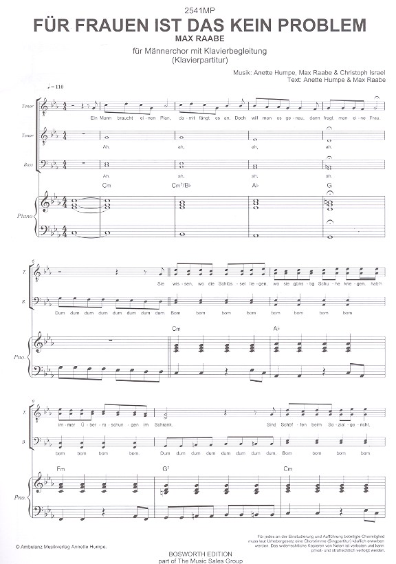 | Untertitel: | für Männerchor und Klavier Partitur und 10 Chorpartituren |