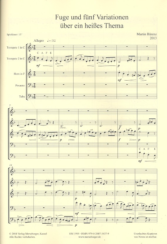 | Untertitel: | für 2 Trompeten, Horn, Posaune und Tuba Partitur und Stimmen |