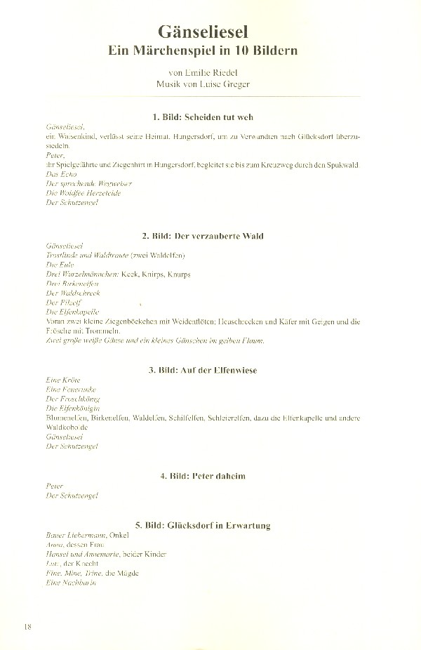 Riesel, Emilie, Text Märchenspiel in 10 Bildern