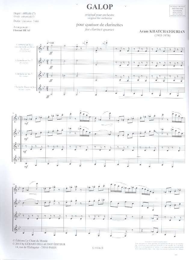 Produktinformationen "Galop pour orchestre pour 4 clarinettes"