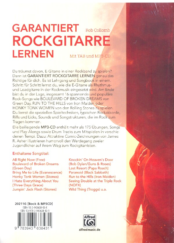 Methode und Songbook in Einem Du träumst davon, E-Gitarre in einer Rockband zu spielen. Dann ist Garantiert Rockgitarre lernen genau richtig für dich. Es ist Methode und Songbook in einem. Schritt für Schritt lernst du, wie die E-Gitarre als Rhythmus- und Leadgitarre in der Rockmusikpraxis eingesetzt wird. Am Ende bist du in der Lage, spannende populäre Rockklassiker wie Boulevard of Broken Dreams von Green Day, Run to the Hills von Iron Maiden oder Honky Tonk Women von den Rolling Stones zu spielen. Du lernst die speziellen Spieltechniken, typischen Rockakkorde, Riffs und Licks, die Songstrukturen und Sounds, die im Rock zum Tragen kommen. Die beiliegende Audio-CD enthält die Übungen und Songs als Play-Alongs sowie Drum Tracks zum Mitspielen. Mit attraktiven Illustrationen von James Asher.