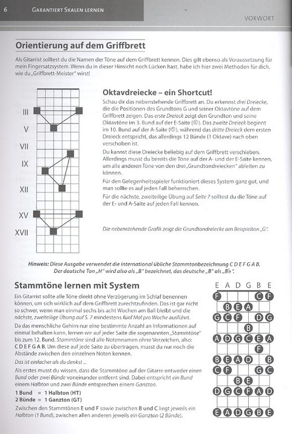Der Wegweiser für das Gitarrengriffbrett Garantiert Skalen Lernen für Gitarre ist keine weitere Skalensammlung, sondern ein Wegweiser für das Gitarrengriffbrett mit einem umfassenden, methodischen Ansatz, Tonleitern und Arpeggien auf der Gitarre zu lernen. Bernd Kiltz konsequent durchdachtes und bereits in der Praxis bewährtes Konzept soll dir zur hundertprozentigen Orientierung auf dem Griffbrett verhelfen! Das Konzept: Kurze, übersichtliche Fingersätze innerhalb einer Oktave sind schnell erlern- und wieder abrufbar und werden mit den bekannten Standard- und 3-Notes-per-String-Fingersätzen verknüpft. Arpeggien, Skalen und Akkorde verschmelzen zu einer sinnvollen Einheit. So wird die bewusste, melodische Improvisation für dein Solospiel gefördert. Ganz nebenbei lernst du die Bedeutung von Spannung und Auflösung innerhalb einer Skala bzw. eines Modes kennen. Um mit diesem Buch arbeiten zu können, ist es nicht notwendig, schon irgendwelche Fingersätze zu kennen. Alles wird ausführlich erklärt und in Form von Griffbrettdiagrammen, Noten und Tabulatur dargestellt.