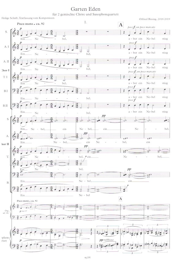 | Untertitel: | für 2 Chöre (SAATBB, SATB) und Saxophonquartett Klavierauszug (dt) |