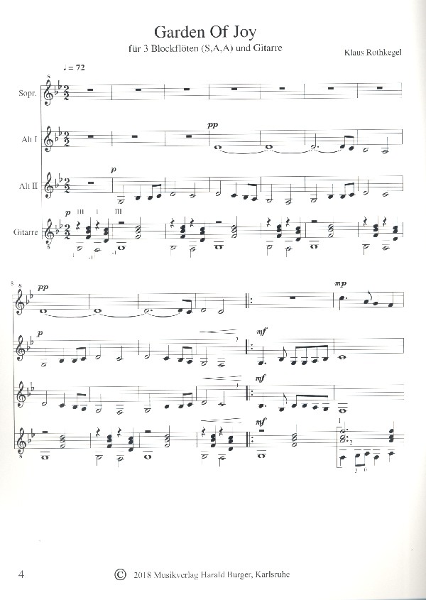 | Untertitel: | für 3 Blockflöten (SAA) und Gitarre Partitur und Stimmen |
