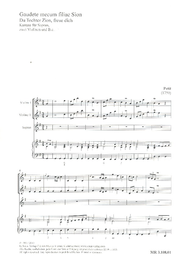 | Untertitel: | für Sopran, 2 Violinen und Bc 2 Partituren und Instrumentalstimmen (dt/la) |