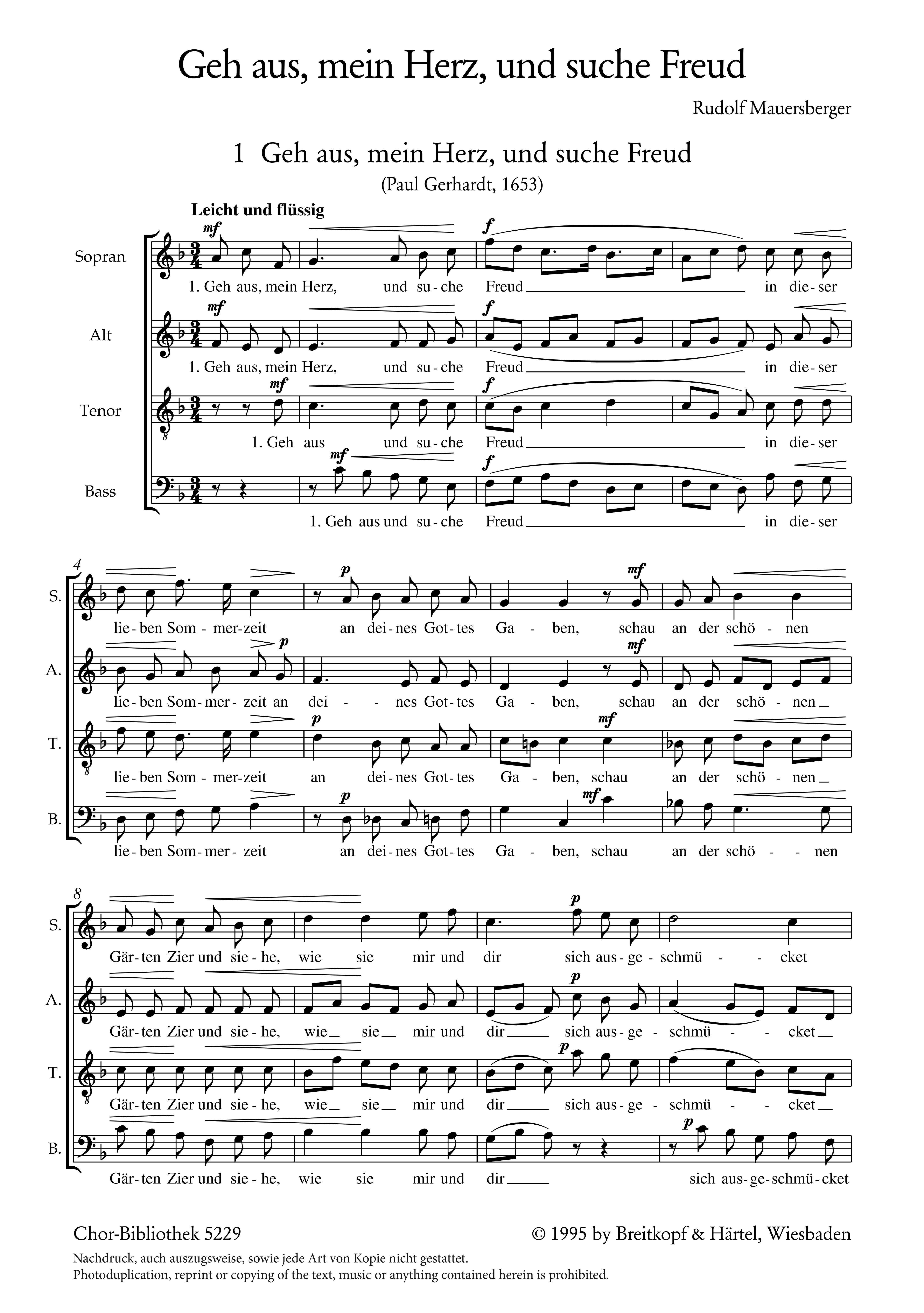 5 Chorsätze aus der 'Geistlichen Sommermusik' (1948) Geh aus, mein Herz, und suche Freud Herr, wenn ich dich anrufe, so erhörst du mich Komm, lass uns gehn, mein Freund, hinaus auf's Feld Schönster Herr Jesu / Darum sage ich euch Ich bin das Brot des Lebens / Wann wird doch einst erscheinen