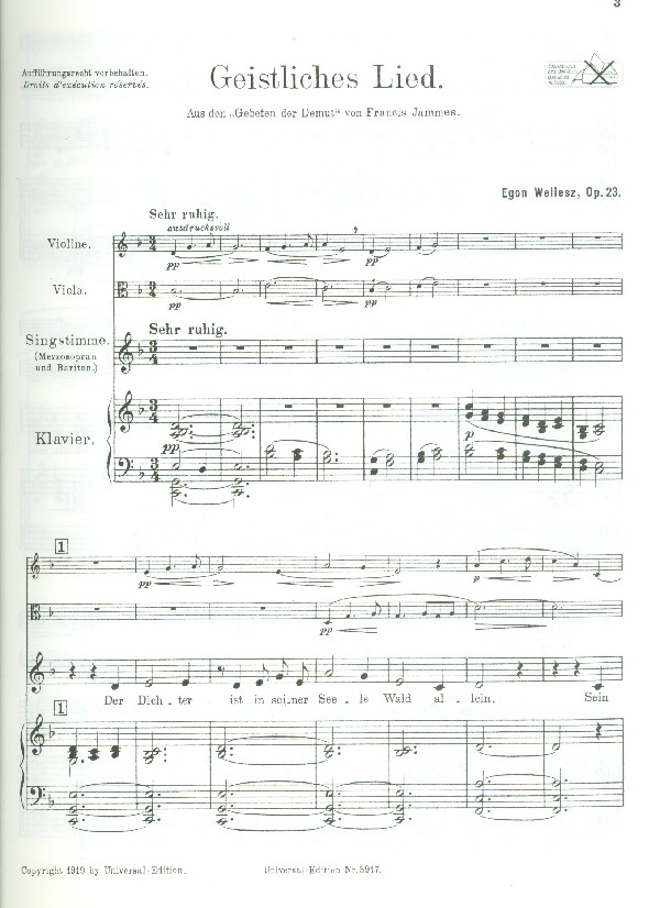 | Untertitel: | für mittlere Singstimme, Violine, Viola und Klavier Partitur und Stimmen |