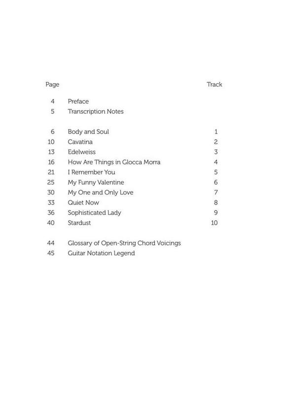 1. Cavatina 2. Quiet Now 3. Body and Soul 4. Edelweiss 5. Stardust 6. How Are Things In Glocca Morra 7. I Remember You 8. My funny Valentine 9. My One And Only Love 10. Sophisticated lady