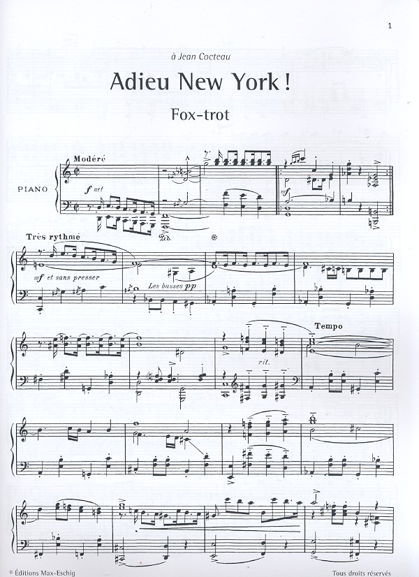 Adieu New York 3 Pastorales 3 Impromptus Les fâcheux Sonatine 3 Morceaux pour Le lac aux dames