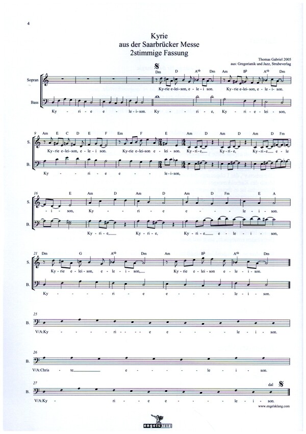 Die 'Saarbrücker Messe' entstand zum Abschlussgottesdienst des 96. Deutschen Katholikentages 2006. Ziel dieser Komposition von Thomas Gabriel ist es, anspruchsvolle, zeitgemäße Chormusik mit einfachen Teilen, die eine Gemeinde gut mitsingen kann, zu kombinieren. Auf diese Weise ermöglicht die Komposition aktive Teilnahme und gleichzeitig mitvollziehendes Hören, eine Forderung, die immer häufiger an die heutige Kirchenmusik gestellt wird. Das Kompositionsprinzip der vorliegenden Ordinariumsgesänge ist antiphonal, die Gemeinde schaltet sich immer wieder mit einem Ruf in das musikalische Geschehen ein: mit einer alten gregorianischen Wendung im Kyrie und im Credo, mit dem achttaktigen 'Gloria' aus Lourdes, mit eigens dafür komponierten Rufen beim Sanctus und beim Agnus Dei. Der Titel dieser Sammlung von neuen Gesängen zur Messfeier ist der Beginn des 'Benedictus', dem Lobgesang des Zacharias (Lk 1, 68 79). Diesem Lobgesang wurde das Motto des Katholikentages 2006 entlehnt: 'Gerechtigkeit vor Gottes Angesicht.' Das Benedictus ist deshalb auch das zentrale Werk in dieser Sammlung. Es ist doppelchörig angelegt und eine Reverenz an die Satztechniken des Frühbarock. Dazu ist der gleichnamige Tonträger erschienen, auf dem die Gesänge dieses Heftes unter der Leitung des Komponisten zu hören sind. Für kleinere Chöre ist auch eine zweistimmige Fassung erschienen. Inhalt: Kyrie, Gloria, Antwortgesang, Credo, Sanctus, Agnus Dei, Deutsches Benedictus
