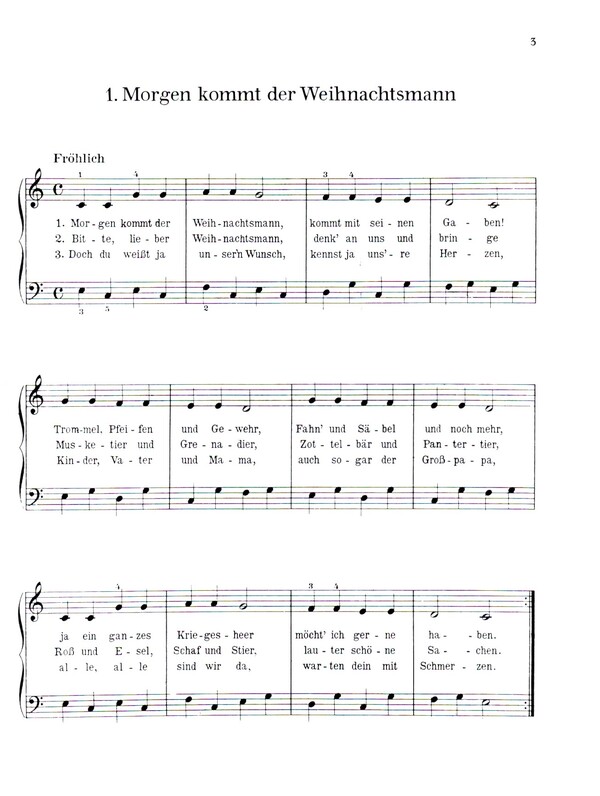 Gerdes, Gustav Morgen kommt der Weihnachtsmann Ihr Kinderlein kommet Stille Nacht O du fröhliche Alle Jahre wieder Was bringt der Weihnachtsmann Am Weihnachtsbaum die Lichter brennen Morgen Kinder wird's was geben Der Christbaum ist der schönste Baum Du lieber heilger frommer Christ Kling Glöckchen Heiligste Nacht O Tannenbaum Süßer die Glocken nie klingen Vom Himmel hoch Es ist ein Ros entsprungen Ihr Hirten erwacht Herbei o ihr Gläubigen Ehre sei Gott in der Höhe Laßt uns lauschen Wenn Weihnachten ist Nicolaus-Lied Susani susani Weihnachtskinderliedermarsch Christbaum Menschen die ihr wart verloren Schlaf wohl du Himmelsknabe du Auf dem Berge da wehet der Wind Nun singet und seid froh Leise rieselt der Schnee Still still still
