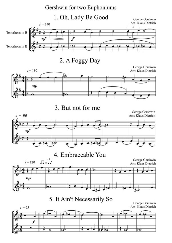 Oh Lady be good A foggy Day But not for me Embraceable You It ain't necessarily so Summertime Love is here to stay I got Rhythm Bidin' my Time How long has this been going on Somebody loves me