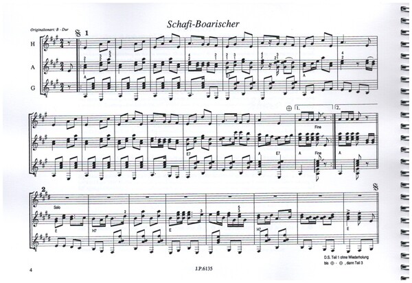 | Untertitel: | für Hackbrett, Harmonika, Gitarre und Baß Partitur und Griffschriftstimme für diat. Harmonika |