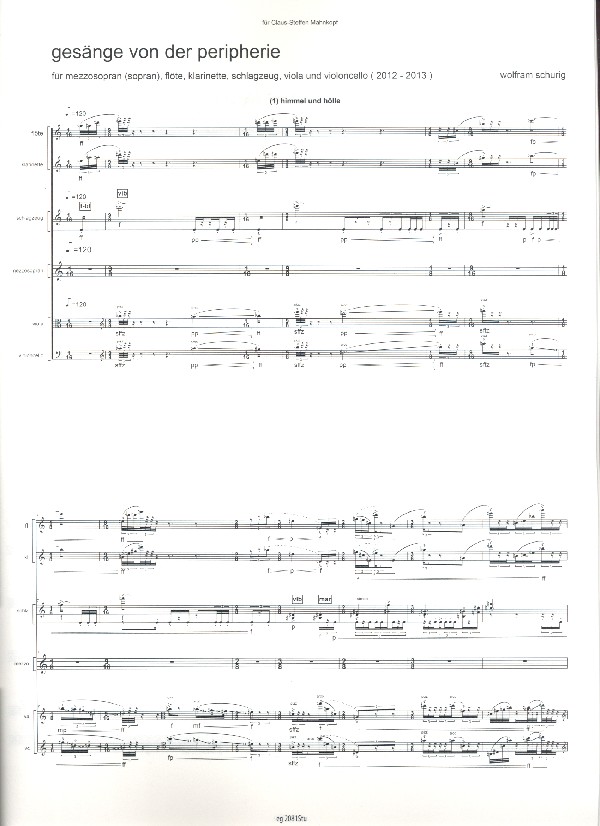 | Untertitel: | für Mezzosopran, Flöte, Klarinette, Schlagzeug, Viola und Violoncello Studienpartitur |