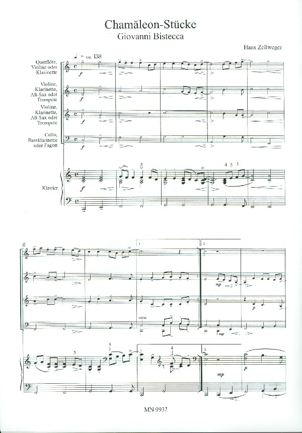 Chamäleonstücke Enthält Stimmen für Violine, Flöte, Violoncello, Klarinette, Baßklarinette, Fagott, Trompete in B, C, Es, Altsaxophon