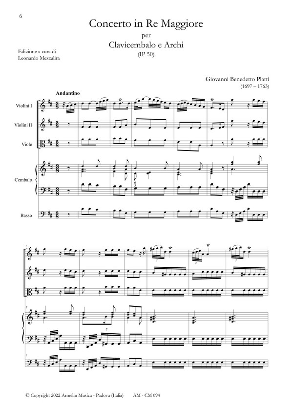 Giovanni Bnedetto Platti, Concerto in Re Maggiore - IP 50