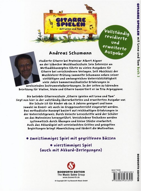 Kinder-Gitarrenschule für den Gruppen-Unterricht Vollständig revidierte und erweiterte Ausgabe der Lehrbuch-Serie für Klassische Gitarre für Kinder im Alter von 5-8 Jahren von Andreas Schumann. Vor allem die Grafik und der Noten-Satz wurden komplettüberarbeitet, um die Übersichtlichkeit und Struktur zu verbessern. Außerdem wurde auch das pädagogische Konzept überarbeitet und neue Spielstücke hinzugefügt.