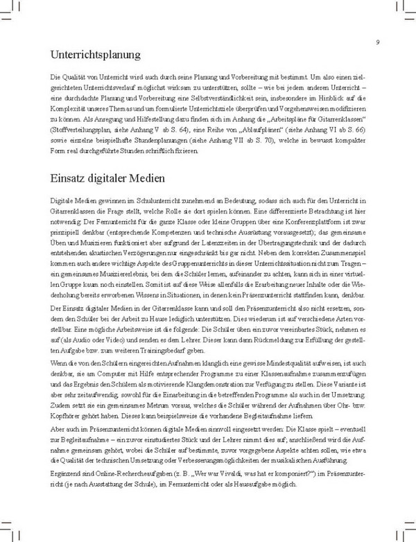 Hartog, Cees, arr. Tipps und weiterführende Informationen für die Arbeit in Gitarrenklassen Der GitarrenKlassenStarter ist ein Konzept aus der Praxis für die Praxis und basiert auf der beliebten Gitarrenschule Gitarrenstarter 1 (Bestellnummer ALB10652) von Cees Hartog: Der erfahrene Musik¡pädagoge Roland Harbich hat nahezu alle darin enthaltenen Spielstücke für ein zumeist vierstimmiges Gitarrenensemble bearbeitet. Dazu passend stehen in dieser Ausgabe die Audioaufnahmen aus dem Gitarrenstarter 1 online im MP3-Format zur Verfügung. So lassen sich die mehrstimmigen Sätze auch Stimme für Stimme erarbeiten und klingen zusammen mit der Audiobegleitung dennoch immer gut. Ergänzend in Vorbereitung und demnächst erhältlich ist das Lehrerheft (ALB 20002), in welchem die vielfältigen Möglichkeiten der Unterrichtsgestaltung, auch in Bezug auf das Thema Begleitung, praxisorientiert beschrieben werden. Alle drei Ausgaben zusammengenommen ergeben das ideale Unterrichtsmaterial für den Gitarrenunterricht im Klassenverband (sogenannte Gitarrenklassen). Gleichzeitig stellt der GitarrenKlassenStarter ein Kompendium mehrstimmiger Stücke dar, die auch unabhängig vom Gitarrenstarter 1 von Gitarrenensembles der Elementarstufe gespielt werden können - mit oder ohne Audiobegleitung. 1. Some Folks [Stephen Foster] 2. Merrily We Roll Along 3. Alles neu macht der Mai 4. Yankee Doodle 5. Au Clair de la Lune 6. Aura Lee [George A. Poulton] 7. Old Mac Donald 8. Tom Dooley 9. Music Everywhere 10. Skip to my Lou 11. Dona, dona [Sholom Secunda] 12. Der Frühling [Antonio Vivaldi] 13. Prélude [Marc-Antoine Charpentier] 14. Sur le pont d'Avignon 15. Orion [Cees Hartog] 16. Bluebells of Scotland [Dora Jordan] 17. Oh Susanna [Stephen Foster] 18. Kommt Ein Vogel Geflogen 19. London Bridge 20. Boogie Woogie Bass [Cees Hartog] 21. The drunken sailor 22. The Cowboy 23. Home on the Range 24. Ode An Die Freude [Ludwig van Beethoven] 25. Walk On! [Cees Hartog] 26. Andantino [Dionisio Aguado] 27. John Brown Had A Little Indian 28. The House of the Rising Sun 29. GREENSLEEVES 30. Bourrée [Johann Krieger] 31. Allegro [Henry Purcell] 32. Take It Easy [Cees Hartog] 33. Der Pirat [Cees Hartog] 34. Skylax [Cees Hartog] 35. Emilio [Cees Hartog] 36. Rosen Fra Fun 37. Oh When The Saints 38. Ich Geh mit meiner Laterne 39. Rock- und Hockbewohner [Cees Hartog] 40. Tipsy [Cees Hartog] 41. Rock & Roll Bass [Cees Hartog] 42. Gatatumba 43. Romance [N.N.] 44. Remy [Cees Hartog] 45. Aram sam sam 46. Lasst uns froh und munter sein 47. Morgen Kommt Der Weihnachtsmann 48. We wish you a merry christmas 49. Jingle Bells [James Lord Pierpont] 50. Alle Jahre Wieder