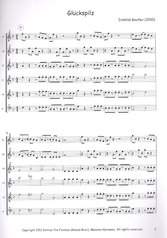 | Untertitel: | für 6 Blockflöten (SSSAAB/Sg) Partitur und Stimmen |