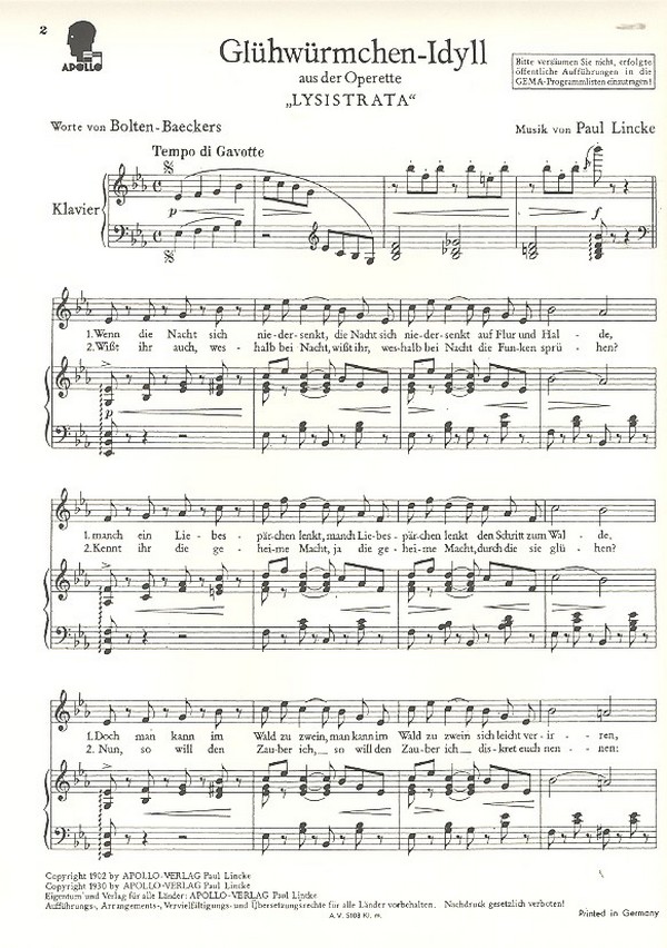 Glühwürmchen-Idyll - aus der Operette 'Lysitrata'
