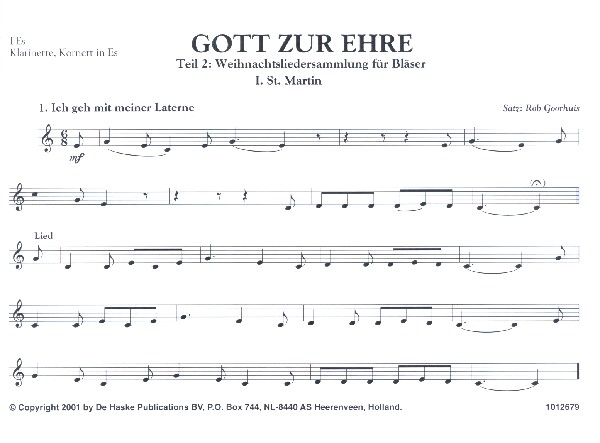 | Untertitel: | 1. Stimme in Es (Klarinette, Kornett) Weihnachtsliedersammlung für Bläser |