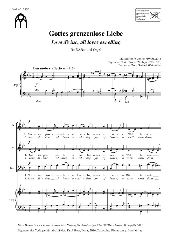 Wesley, Charles, englischer Text Weisgerber, Gerhard, deutscher Text Love divine all Loves excelling Motette