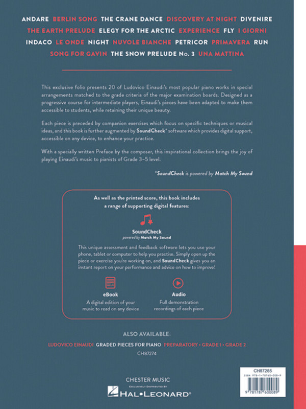 Match my Sound with interactive Assessment and Feedback 20 Arrangements with Companion Exercises and Practice Notes Andare Berlin Song The Crane Dance Discovery at Night Divenire The Earth Prelude Elegy for the Arctic Experience Fly I giorni Indaco Le onde Night Nuvole bianche Petricor Primavera Run Song for Gavin The Snow Prelude no.3 Una mattina
